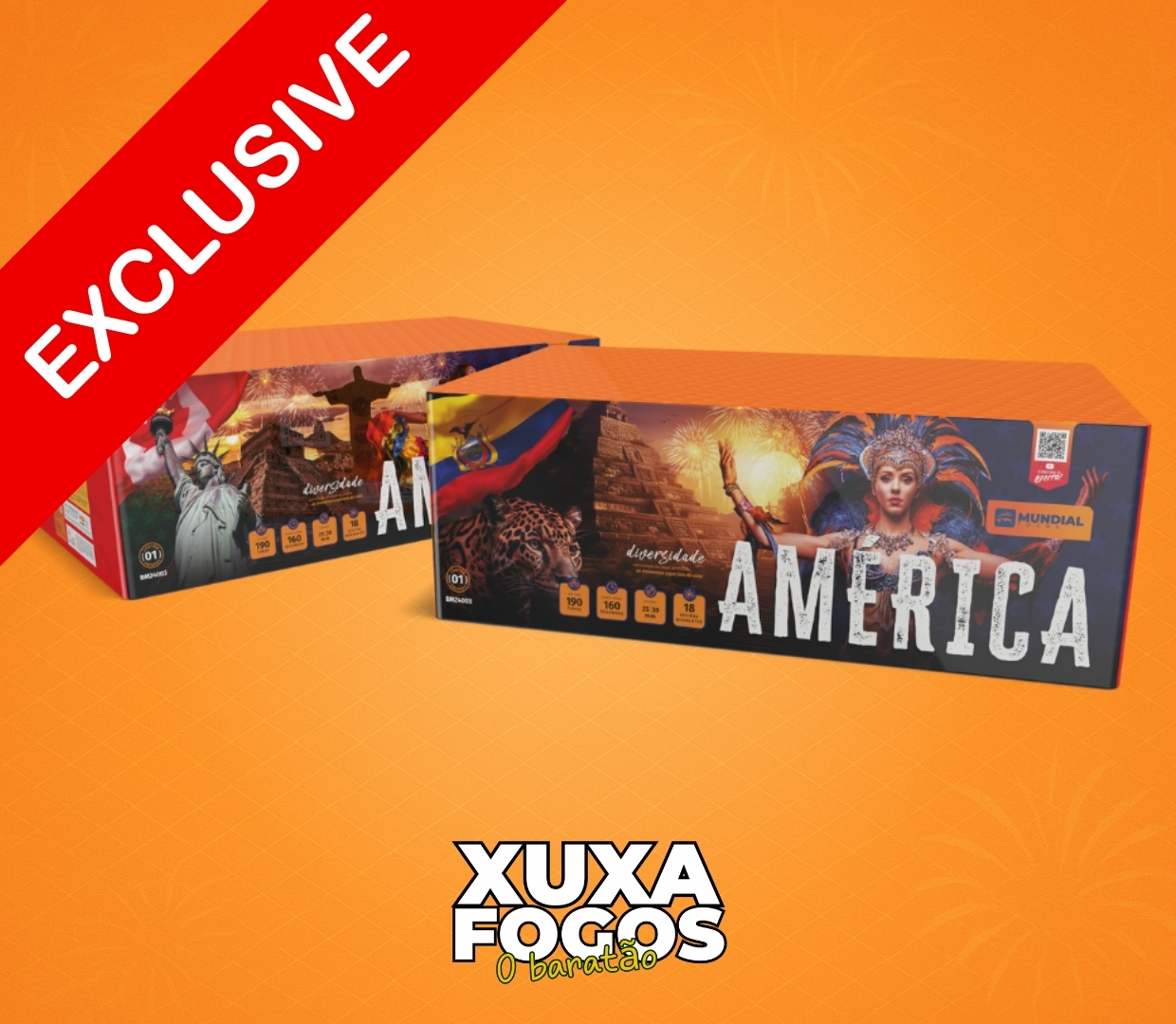A Torta América – 190 Tubos está disponível em nossa loja com entrega rápida em Salvador e região, através da renomada Mundial Fogos. Uma escolha ideal para quem deseja um show pirotécnico prolongado, vibrante e inesquecível em qualquer celebração.