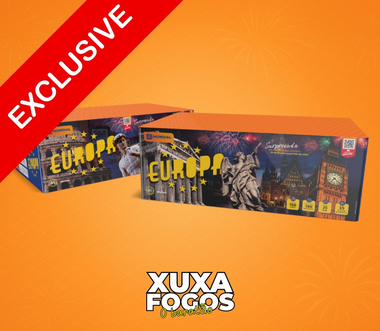 A Torta Europa – 150 Tubos está disponível em nossa loja com entrega rápida em Salvador e região. É a escolha certa para quem deseja um show pirotécnico profissional, de alto impacto e inesquecível em qualquer celebração.